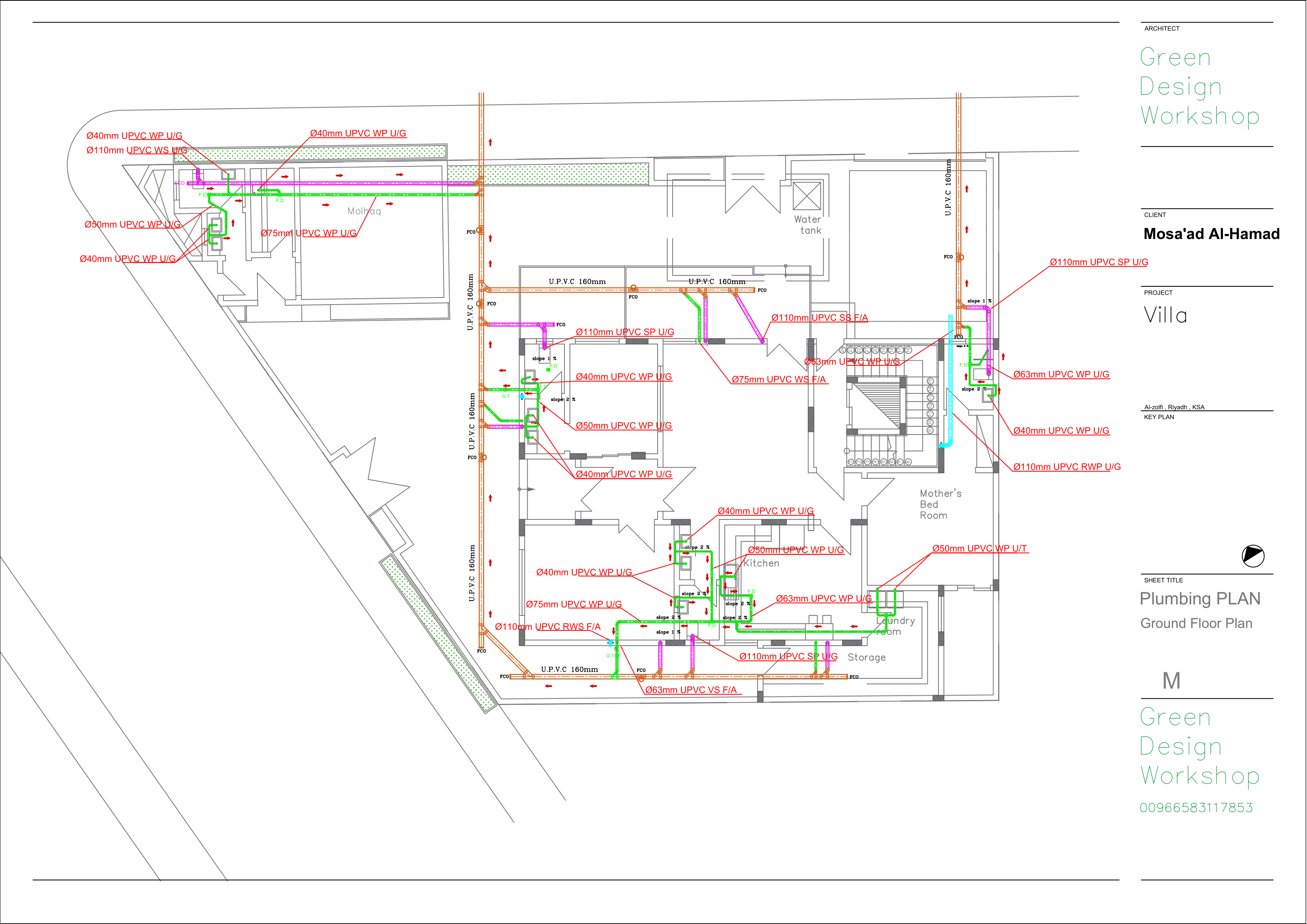 مشروعنا الحالي هو تصميم نظام السباكة (مخططات شبكات إمدادات المياه وخطط أنظمة الصرف الصحي) لفيلا سكنية في المملكة العربية السعودية - الرياض
