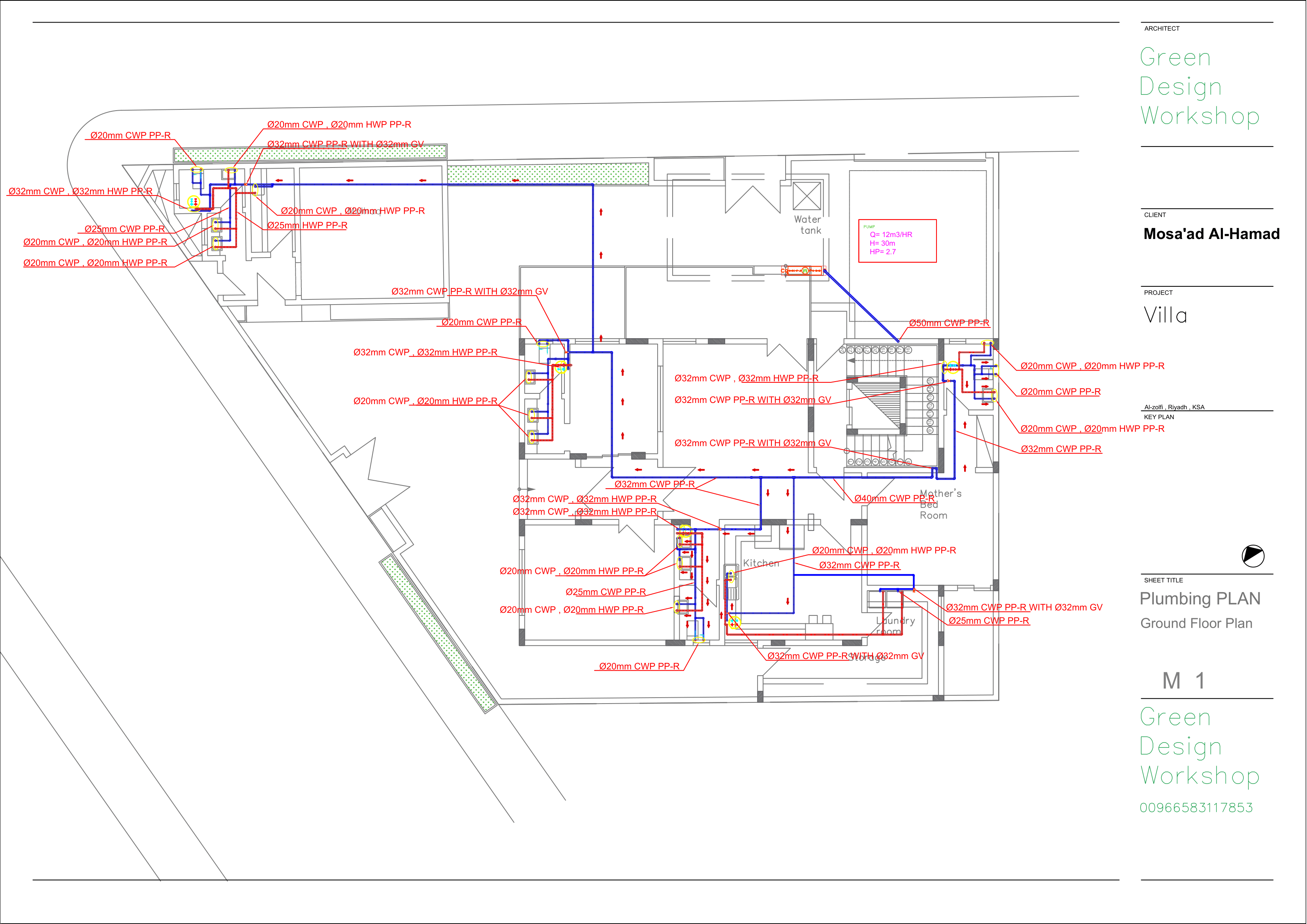 مشروعنا الحالي هو تصميم نظام السباكة (مخططات شبكات إمدادات المياه وخطط أنظمة الصرف الصحي) لفيلا سكنية في المملكة العربية السعودية - الرياض